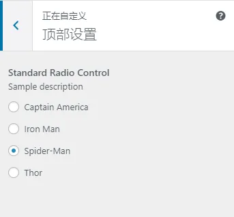 Control是显示UI组件,在默认的wordpress核心代码中,已经提供了一些默认组件(输入框,选择框,单选按钮等等)。其他Conrol需要继承WP_Customize_Control创建自己Controls的。